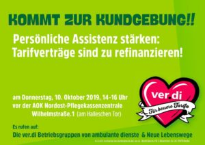 im Anschluss an unsere Betriebs-versammlung am Donnerstag, den 10.10. von 10:00-13:00 Uhr rufen die ver.di-Betriebsgruppen von ambulante dienste e.V. und Neue Lebenswege unter dem Motto „Persönliche Assistenz stärken,